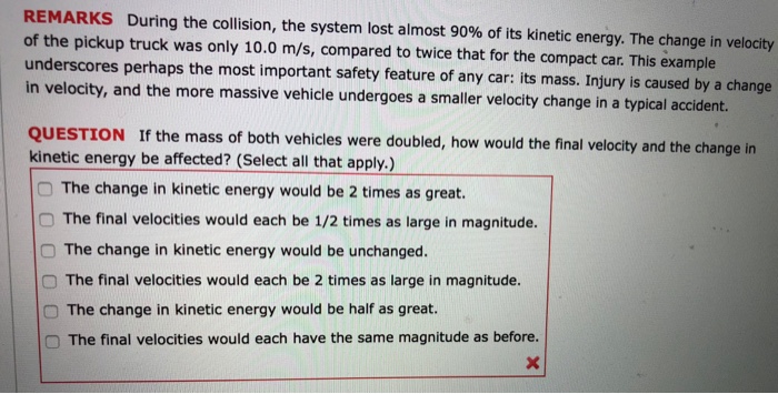 Speed before puck collision and kinetic energy - HomeworkLib from img.homeworklib.com But this just means that the object is losing kinetic. This kinetic energy calculator is a tool which helps you assess the energy of motion. I am not really sure of the answer in the during the collision, there momentum will not be conserved because there is an external force (from the the wired conversation illuminates how technology is changing every aspect of our. The formula for calculating kinetic energy (ke) is ke = 0.5 x mv2. Unlike elastic collisions, perfectly inelastic collisions don't conserve energy, but they do conserve momentum. I'm thinking that the change in the calculated kinetic energy accounts for something. Instead both in elastic and anelastic collisions, momentum remains constant. And the total momentum is conserved in a collision.